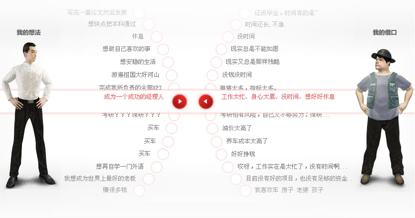 早上还看了一个关于借口的话题。是这样说的,世界上,理想多,借口更多,实现理想的比赛,就是梦想与借口较量,在与借口的PK中,你是赢家吗?我就有很多的借口,如果你没有达到,你就会找出很多的借口,当你有一个想法,就有一千个借口阻止你的行动,借口看似强大,只要你勇敢迈出第一步,它们就会被你远远的甩在身后。